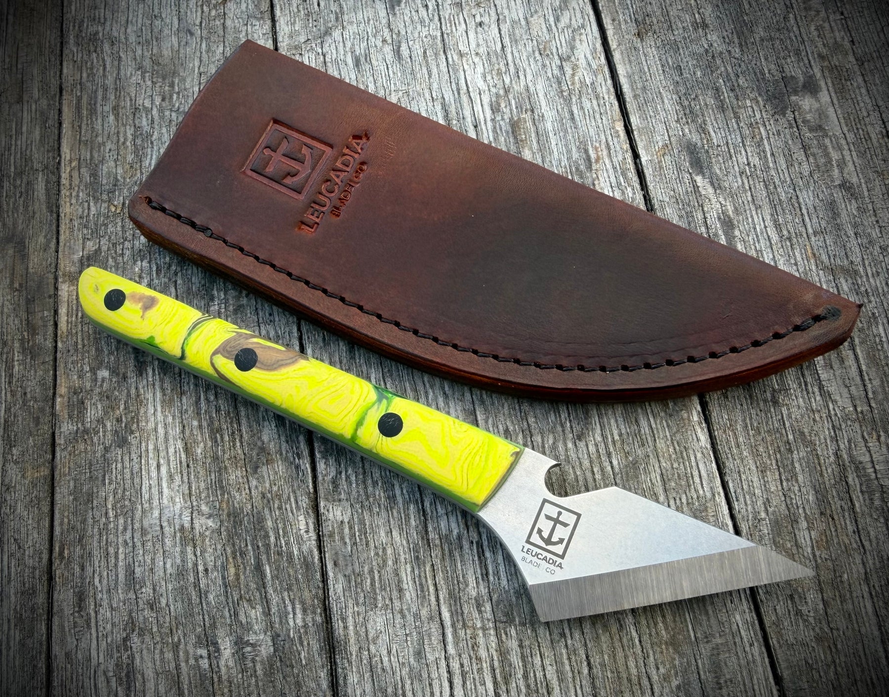 The Beeradashi is a unique, handmade combo bottle opener and small utility blade with a 2" single-bevel, chisel-ground cutting edge. Overall length is 6.25".