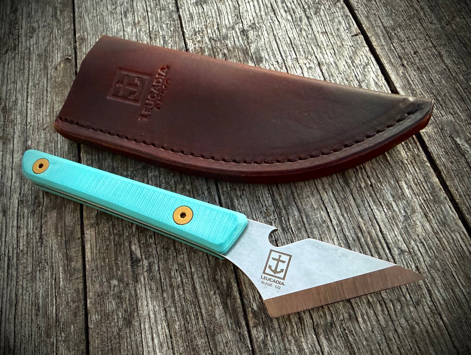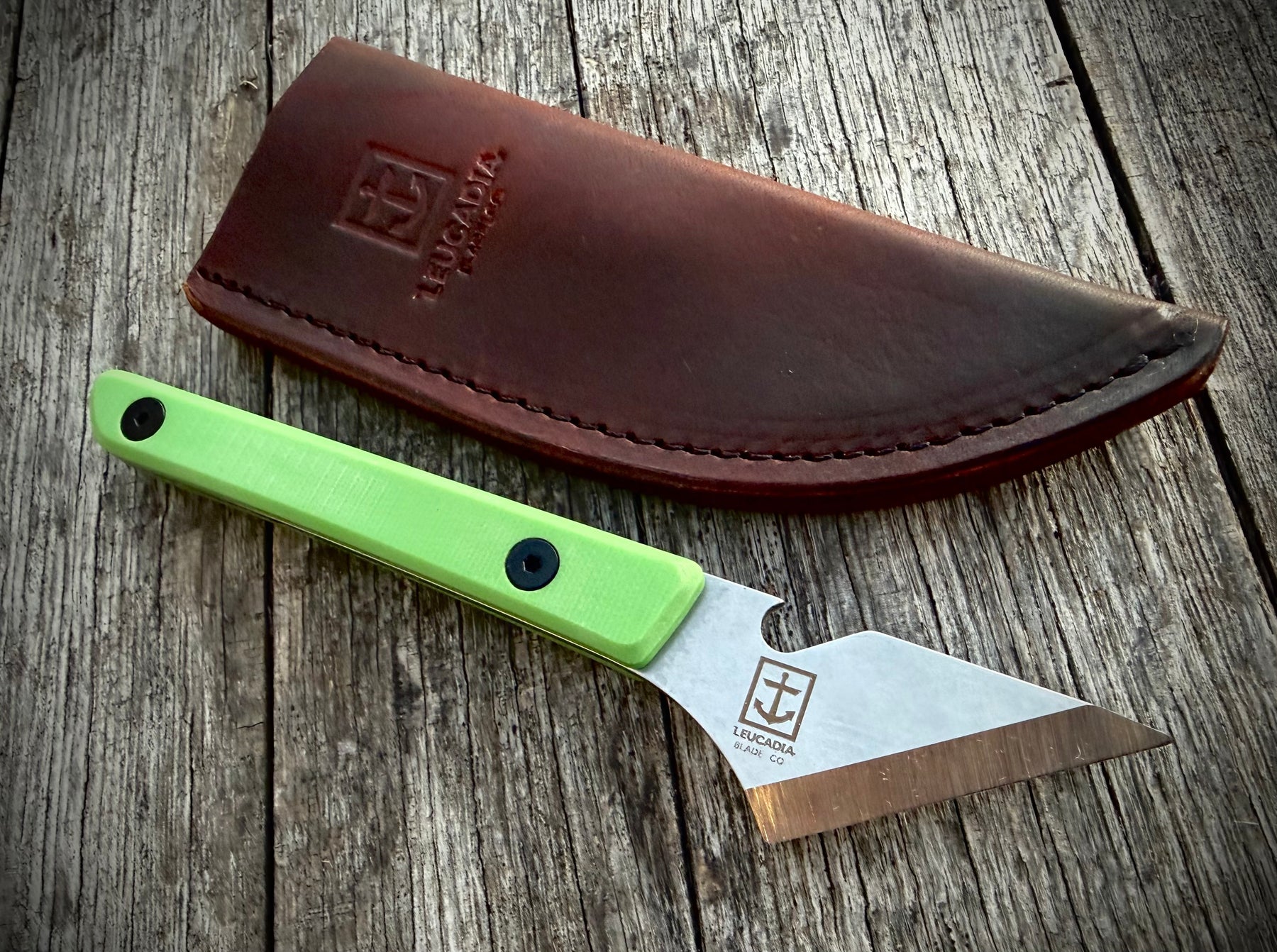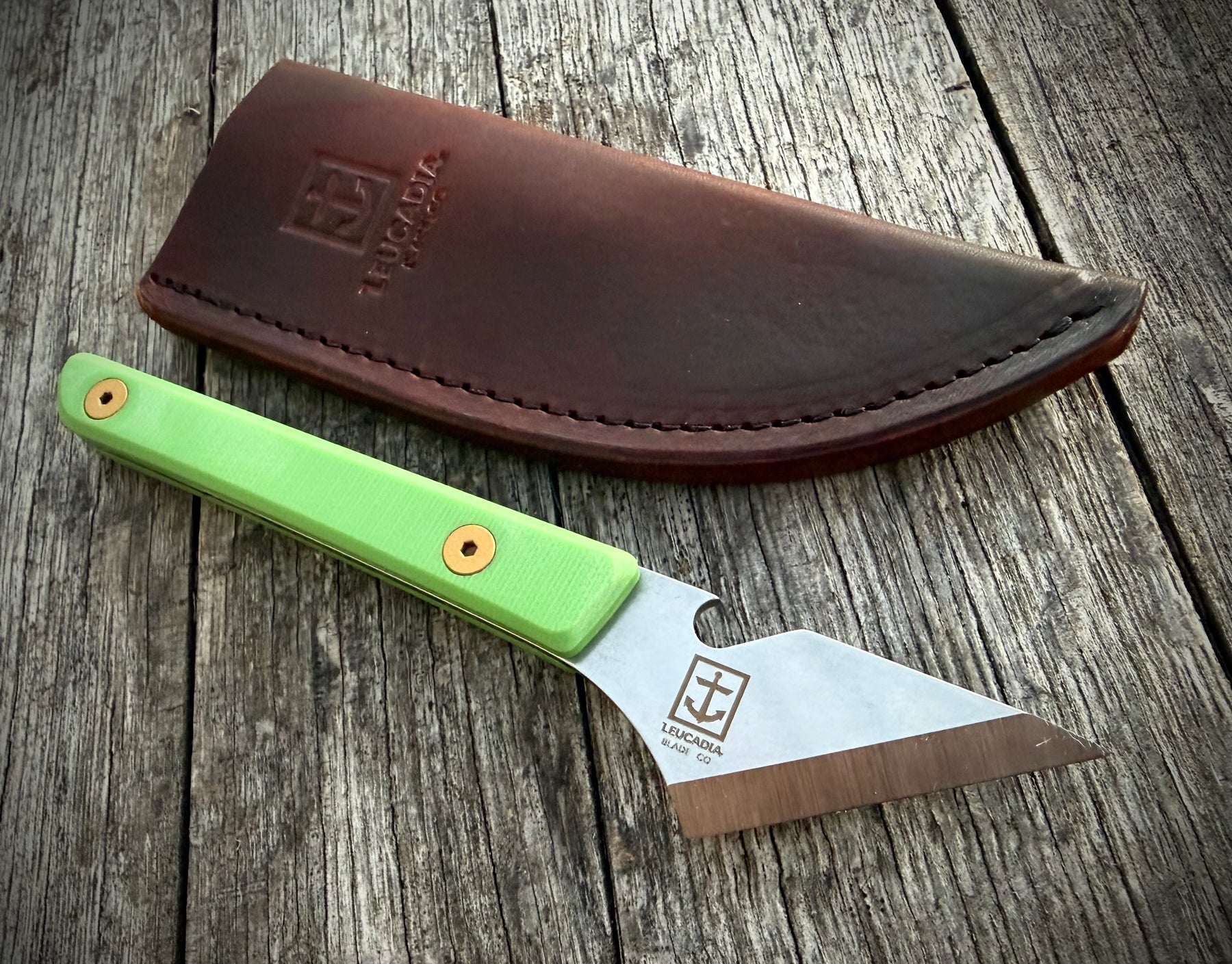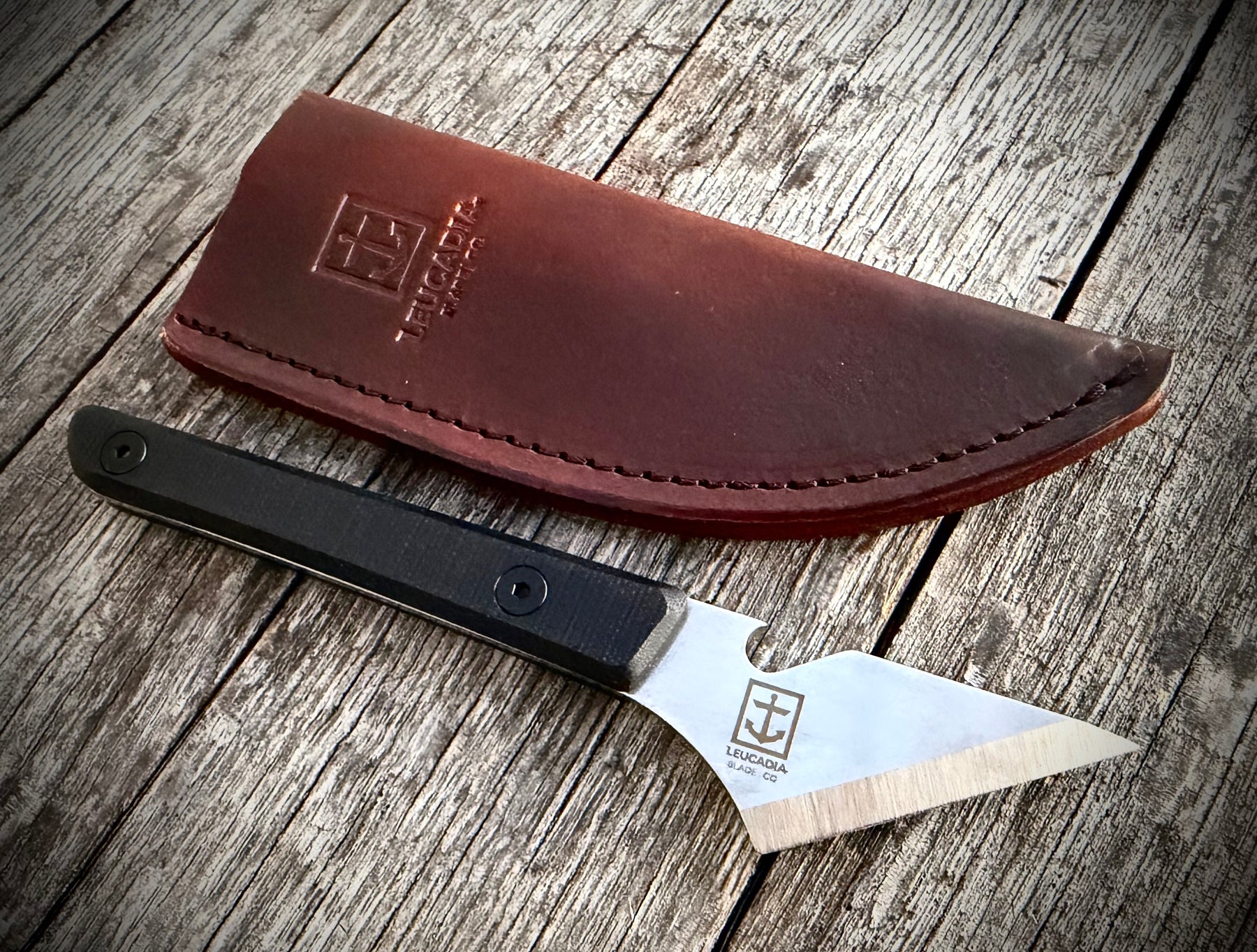 The Beeradashi is made from AEB-L stainless steel hardened to 61HRC and it includes a handmade leather sheath. The handles are sculpted from G10.