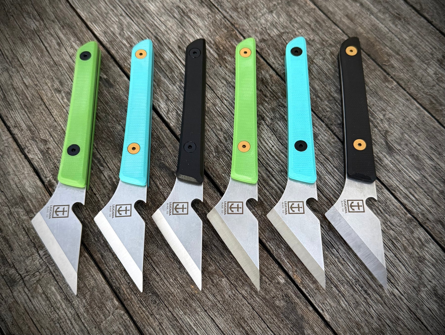 The Beeradashi is a unique combo small utility blade + bottle opener with a 2" single-bevel, chisel-ground cutting edge. Overall length is 6.25".